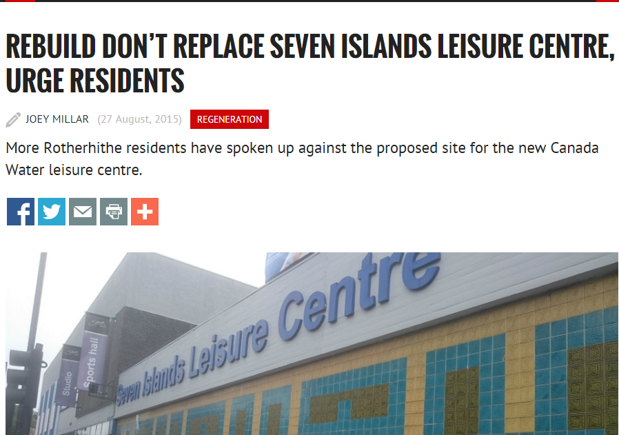 Southwark Council has now opened its consultation on its plan to cut down dozens of trees and destroy a wildlife area to move the Seven Islands leisure centre to a vastly inferior site. You can find the consultation by clicking